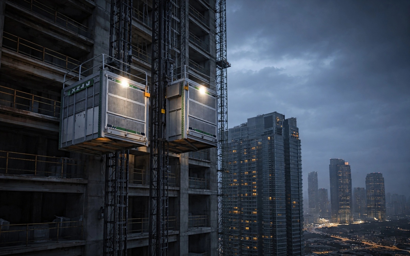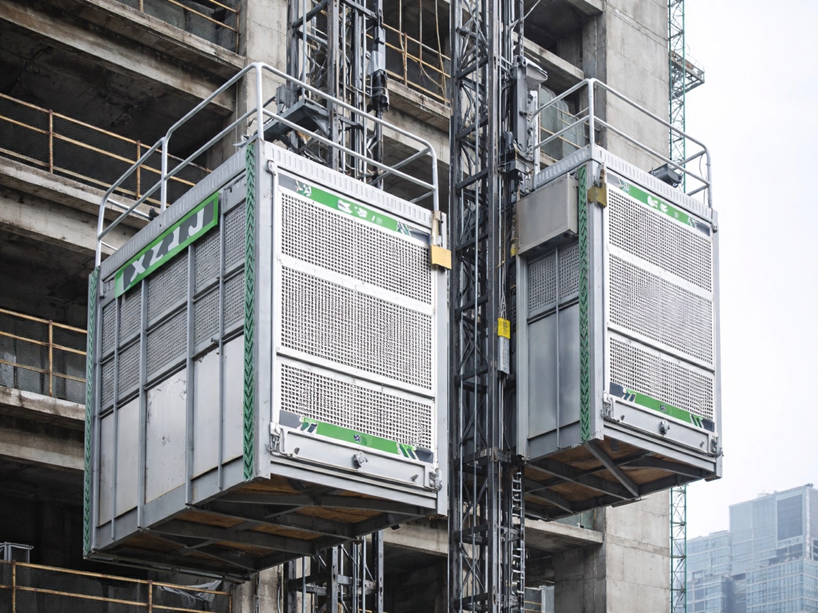 Intelligent twin cage construction hoist designed for modern high-rise projects.